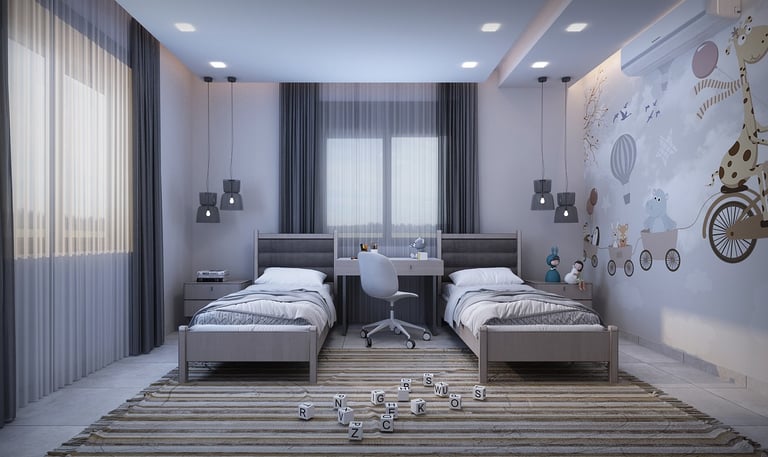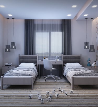 Enjoy a bedroom designed for peace, comfort, and personal expression with earthy tones and soft textures. We create cozy, restful spaces that reflect your style and promote relaxation.